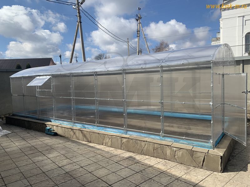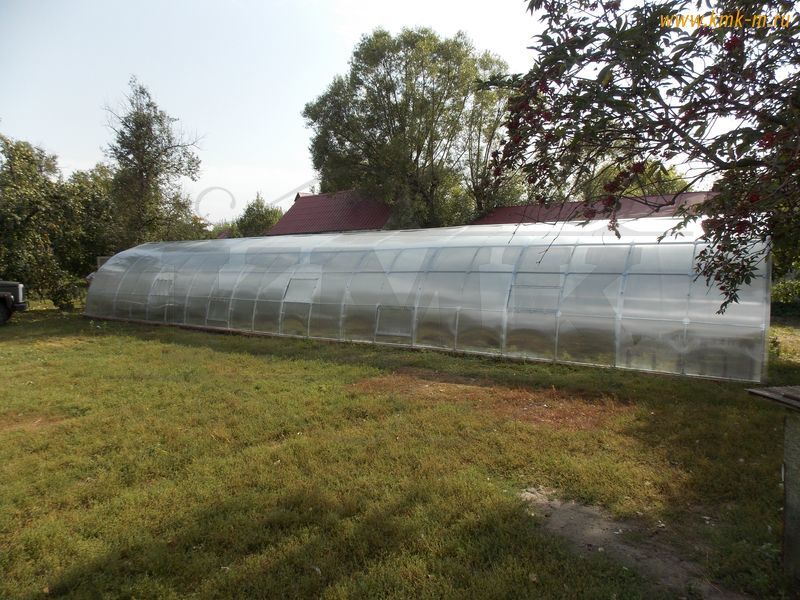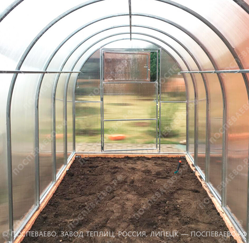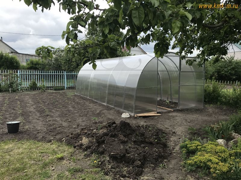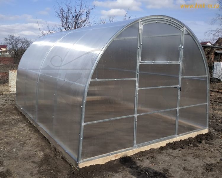 Размеры теплицы: ширина 3 метра, высота 2.06 метра и базовую длину 4 метра, которая может быть увеличена кратно двум метрам - 6,8,10,12 и тд.