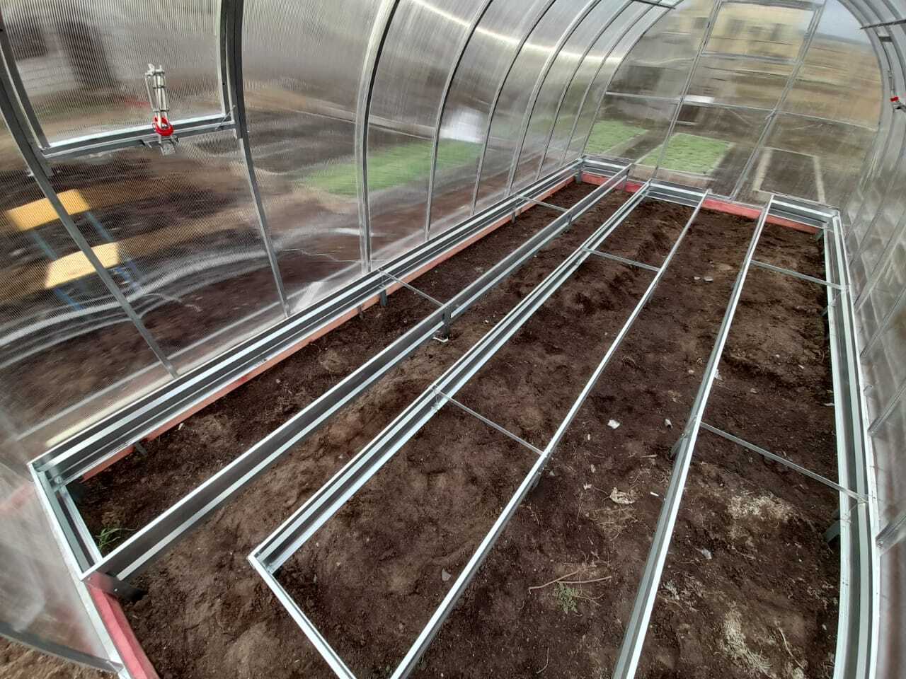 Так же в теплицу можно дополнительно приобрести и установить форточки с автоматическим открыванием, систему капельного полива, оцинкованные грядки, защитную ленту для поликарбоната и другие сопутствующие товары.