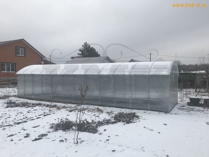 Сверхадёжный оцинкованный металлический каркас модели Фермер 7,5 м из двойных дуг выдерживает, как и любая теплица каплевидной формы, практически неограниченную снеговую нагрузку - ввиду того, что снег не задерживается на теплице. Это означает, что покрытая поликарбонатом теплица рассчитана на максимальные снеговые и ветровые нагрузки, что позволяет эксплуатировать теплицу практически в любом регионе России.